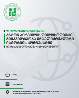 ფილოსოფიური სემინარი: პროფესორ თამარ ცოფურაშვილის მოხსენება: “ანტონ პირველის ფილოსოფიური მემკვიდრეობა ინტელექტუალური ისტორიის კონტექსტში”.