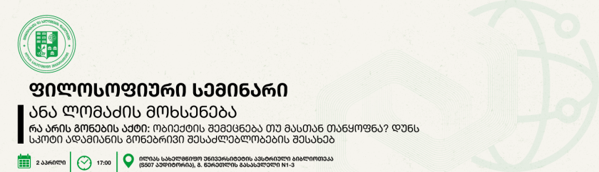 ფილოსოფიური სემინარი: ანა ლომაძეის მოხსენება: „რა არის გონების აქტი: ობიექტის შემეცნება თუ მასთან თანყოფნა? დუნს სკოტი ადამიანის გონებრივი შესაძლებლობების შესახებ“.